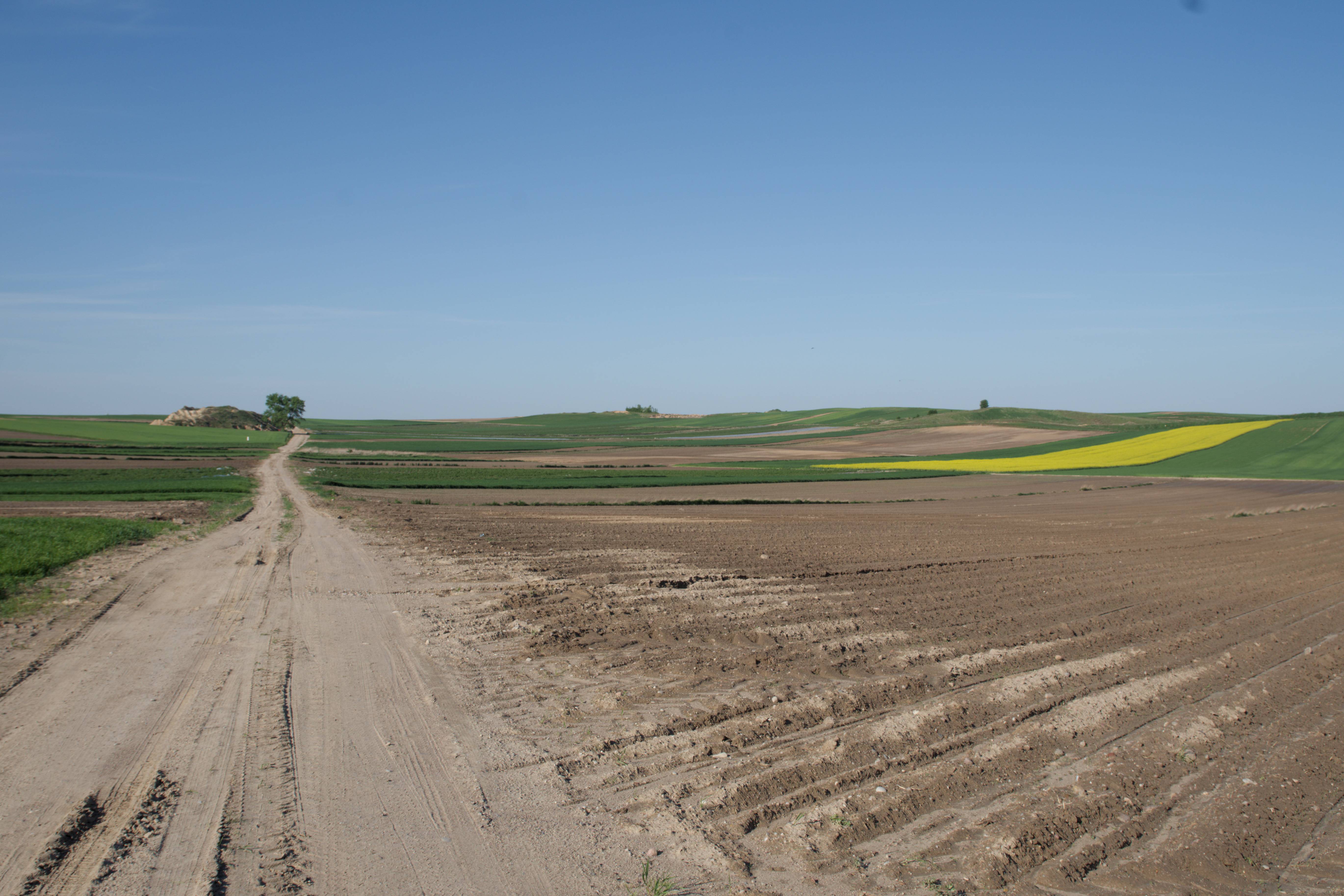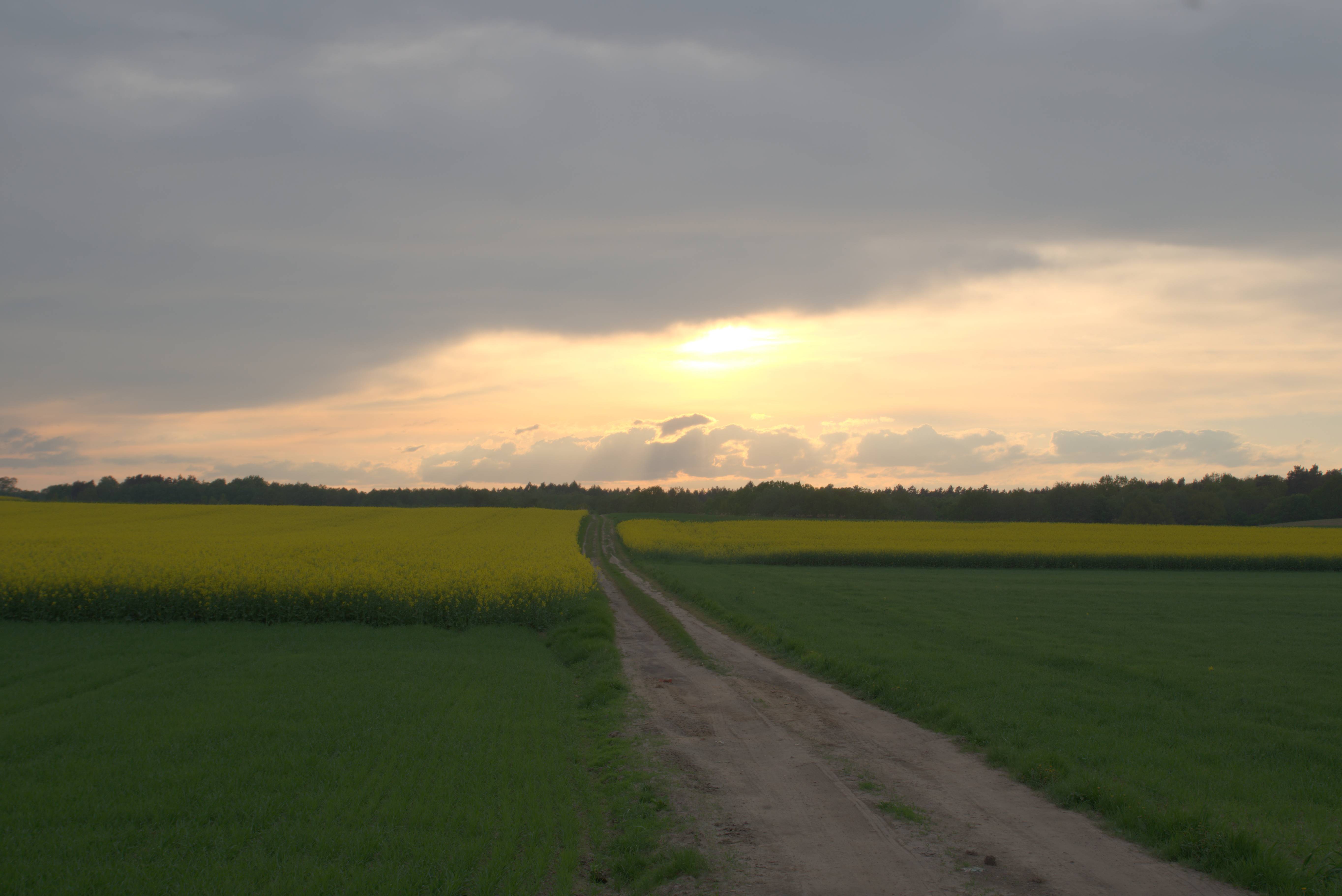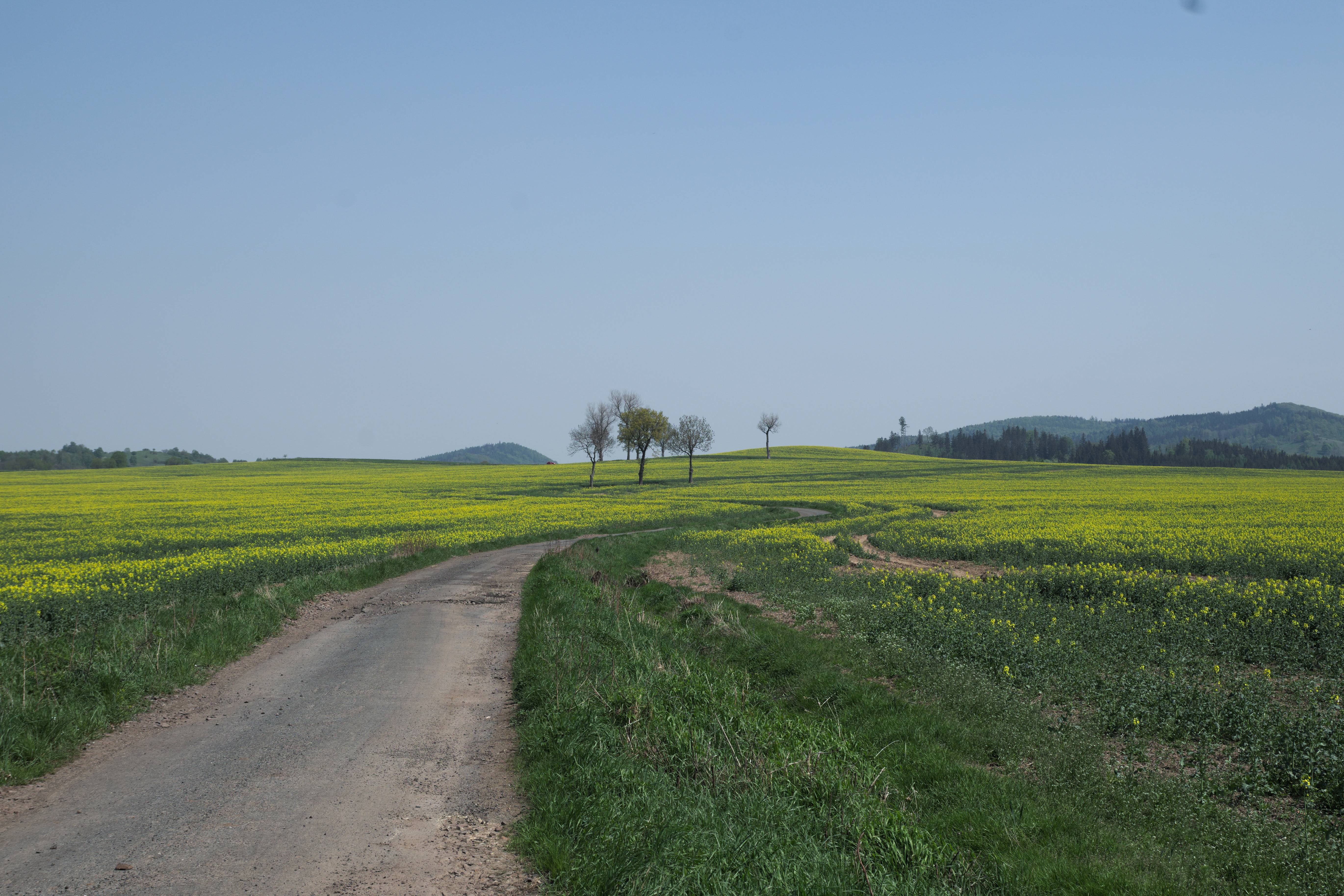 Kwitnący rzepak i asfalt w stanie zaniku